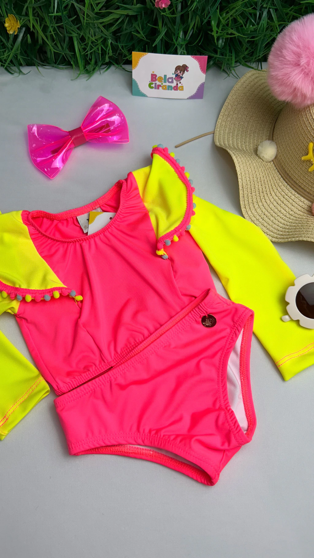 Descrição: Forro que inibe a entrada de areia, antimicrobiana em malha super confortável para nossas pequenas aproveitarem os dias de sol.